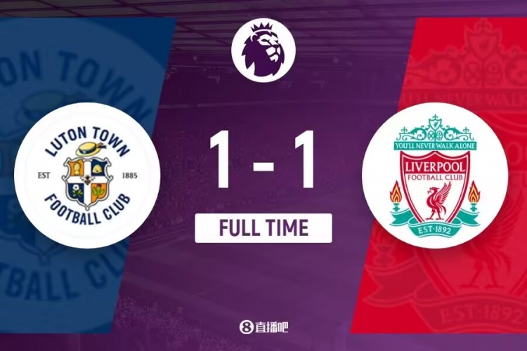 下半场补时8分钟,卢顿1-1利物浦。