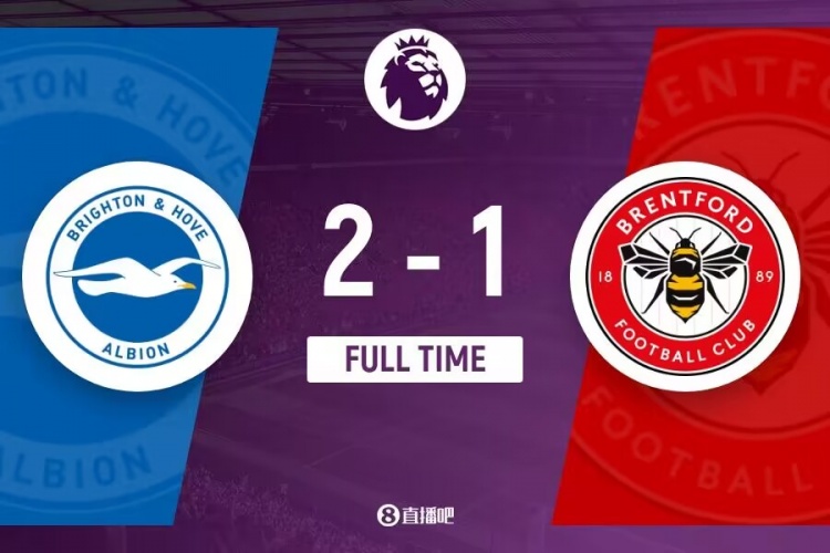 下半场补时5分钟,布莱顿2-1布伦特福德。