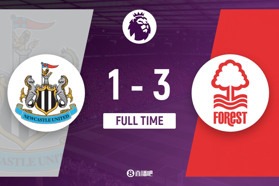 全场比赛结束,纽卡斯尔1-3诺丁汉森林。