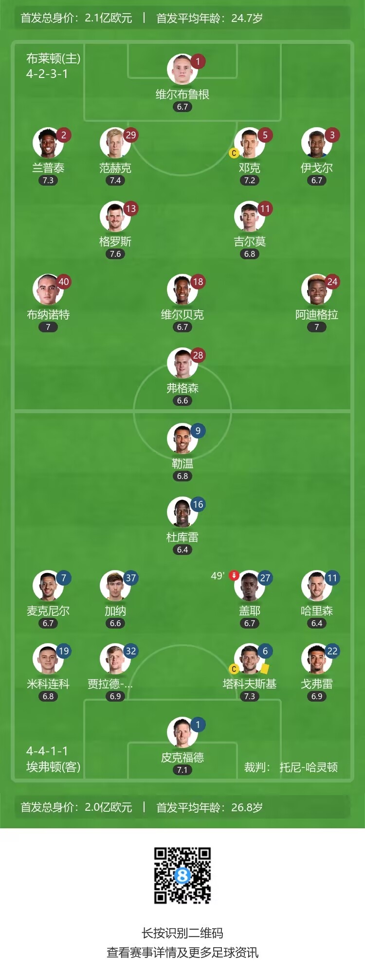 第73分钟,皮克福德开出任意球,皮球被顶了一下落在中后卫布兰斯维特脚下,左脚一记爆射破门!埃弗顿客场1-0领先布莱顿↓