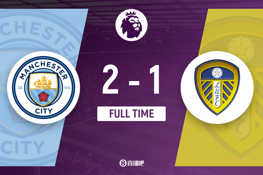 下半场伤停补时4分钟,全场比赛结束,最终曼城2-1利兹联。