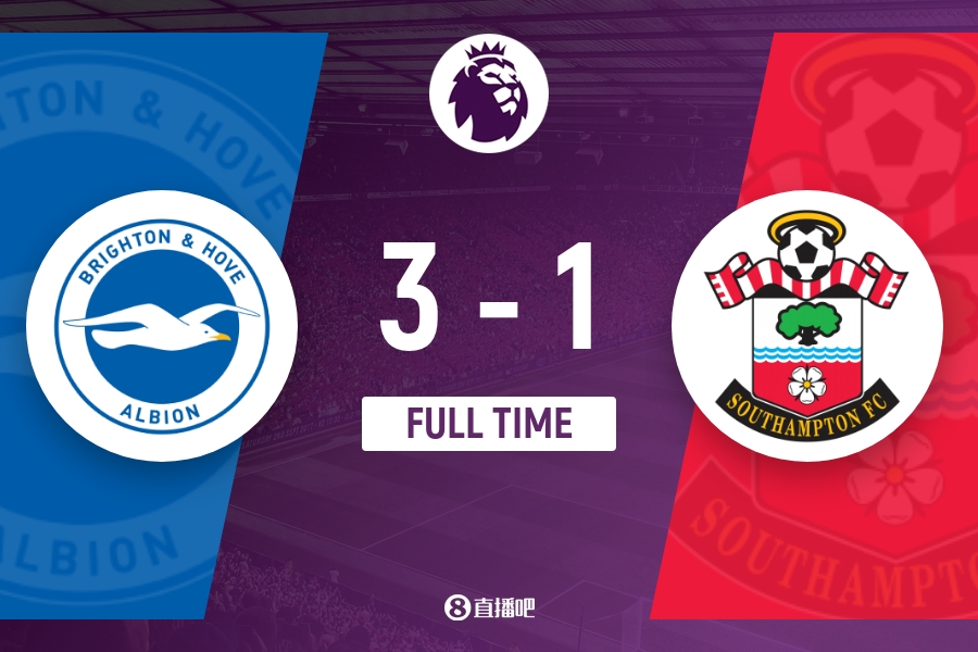 最终全场比赛结束,布莱顿3-1战胜南安普顿。锁定下赛季欧战资格。
