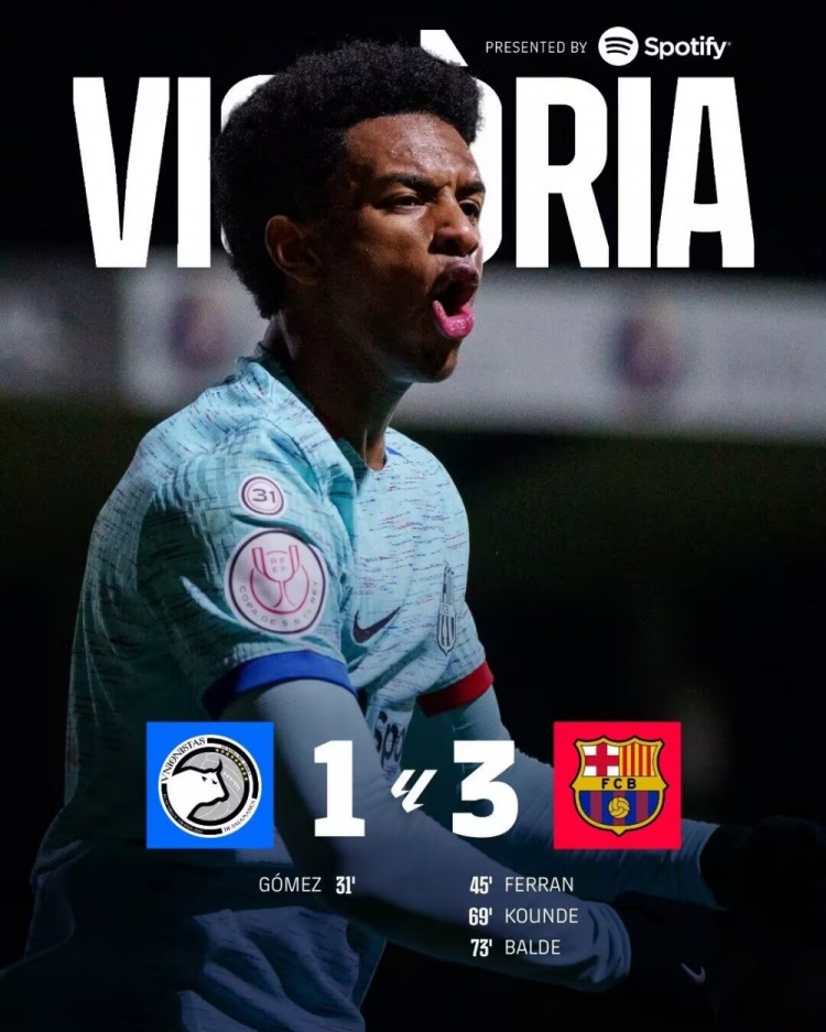 1月19日讯 北京时间1月19日凌晨2:30,西班牙国王杯1/8决赛,巴萨客战萨拉曼卡联盟者。上半场克里斯滕森禁区内摔倒,主裁判没有表示,阿尔瓦罗-戈麦斯凌空抽射破门,费兰-托雷斯扳平,巴塞罗那暂1-1萨拉曼卡联盟者;下半场孔德重炮破门,巴尔德再下一城,最终巴萨3-1逆转萨拉曼卡联盟者,进入八强。