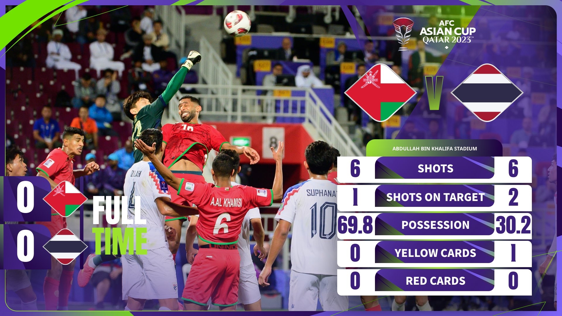 亚洲杯-阿曼0-0泰国,泰国积4分出线形势乐观,阿曼2轮仅积1分