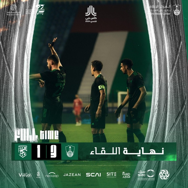 吉达国民首发:21-菲达阿、34-沙姆拉尼、28-德米拉尔、37-欣迪、15-阿马尔、29-迈杰德、40-阿斯马里、87-埃纳齐、8-阿尔纳贝特、11-阿里奥斯基、10-菲尔米诺