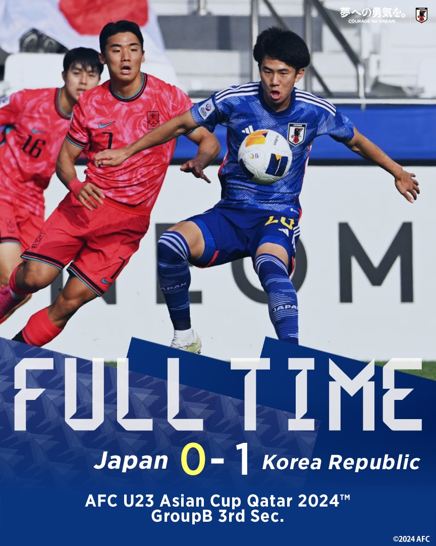 U23亚洲杯-韩国1-0日本小组头名出线战印尼 日本对阵卡塔尔