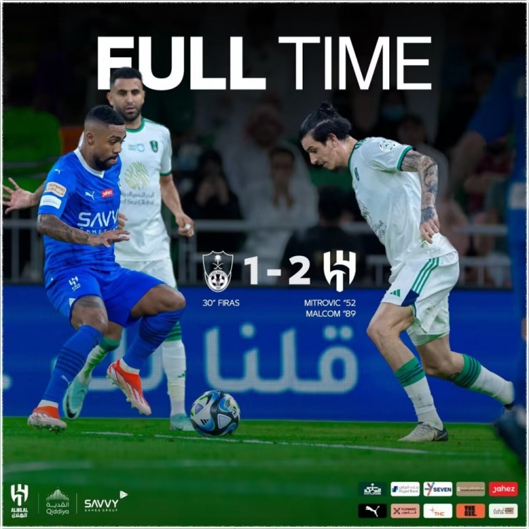 沙特联-新月2-1逆转国民再拿1分即夺冠&30轮不败 马尔科姆绝杀