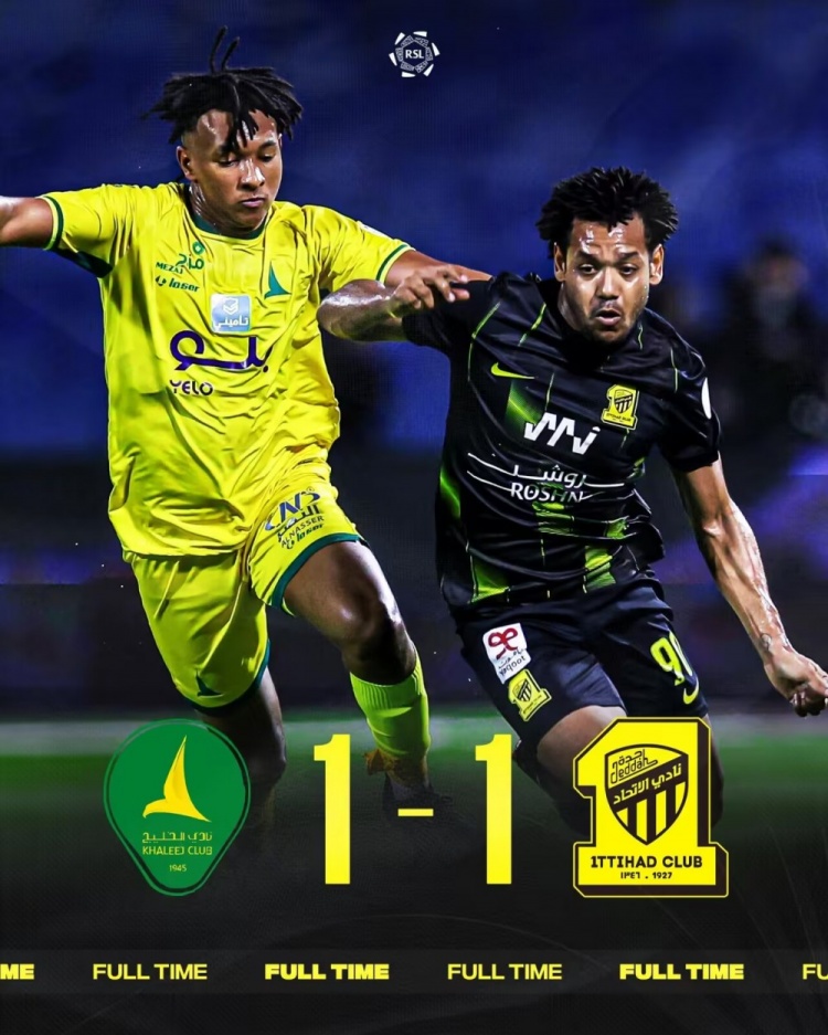 沙特联-吉达联合1-1卡利杰5场不胜&无缘前三 本泽马连续5场缺阵