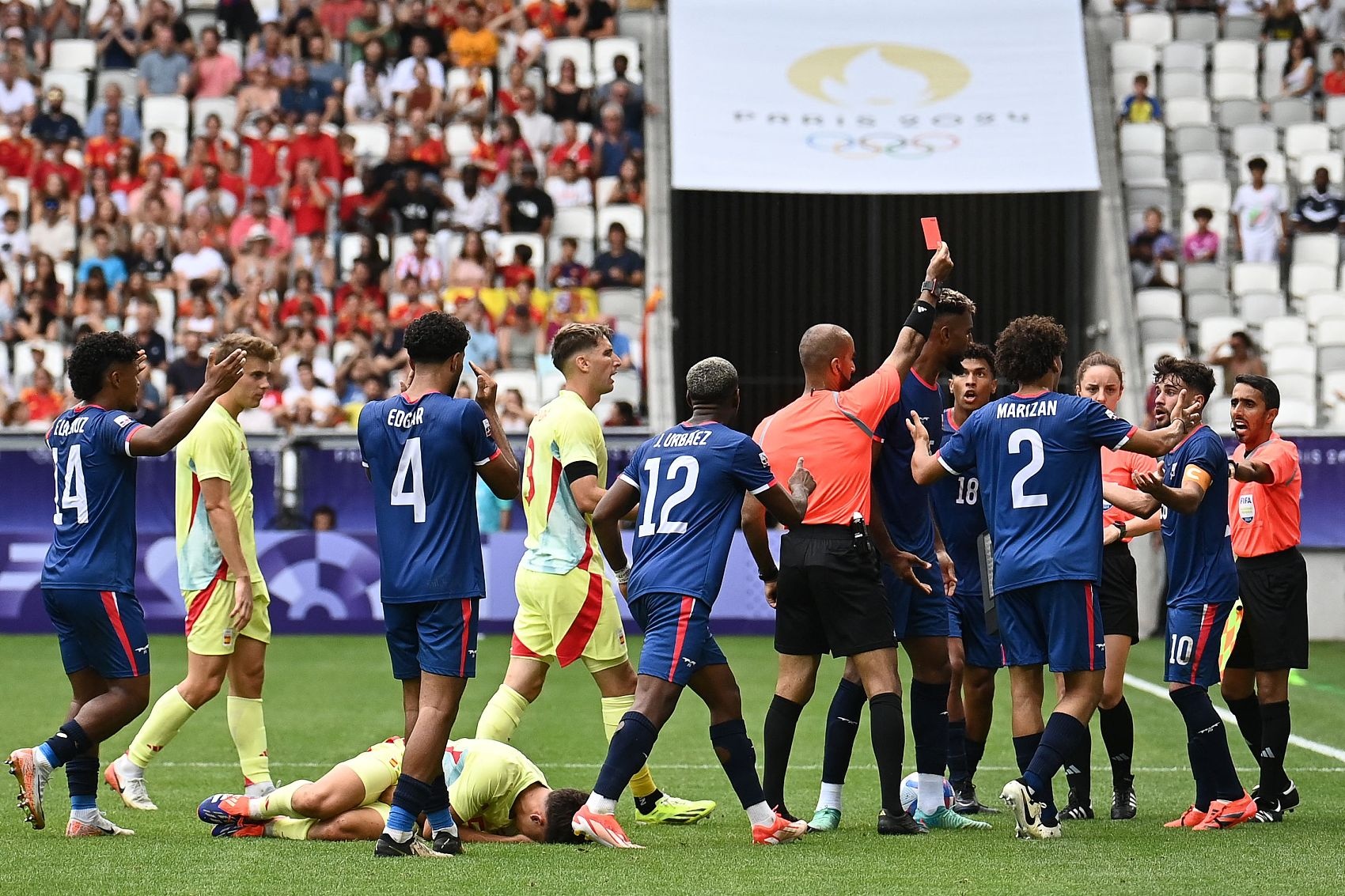 奥运男足-西班牙3-1多米尼加提前出线 费尔明破门阿兹科纳直红