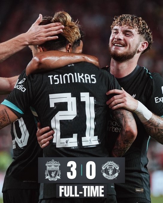 8月4日讯 北京时间7:45,季前友谊赛曼联vs利物浦。上半场,若塔助攻法比奥-卡瓦略连场破门;萨拉赫助攻琼斯建功;凯莱赫多次扑救。下半场,齐米卡斯再下一城。最终,利物浦3-0击败曼联,季前热身赛目前3战全胜!下场友谊赛迎战塞维利亚;曼联2胜3负结束季前赛之旅,下场比赛将在社区盾迎战曼城。