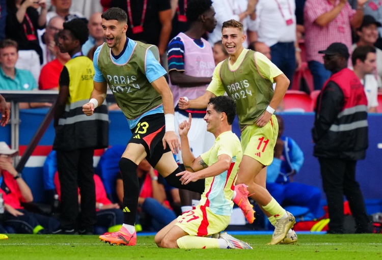 8月10日讯 北京时间8月10日0点,奥运男足金牌赛,法国对阵西班牙。上半场,特纳斯扑救失误,米洛特射门得分,费尔明连进两球反超比分,巴埃纳任意球直接破门。下半场,科内头球中框,阿克利乌什扳回一球,补时阶段图连特斯送点,马特塔点射绝平,图连特斯最后关头射中门框。加时赛,卡梅洛挑射打进两球。全场比赛结束,西班牙5-3法国夺得金牌。