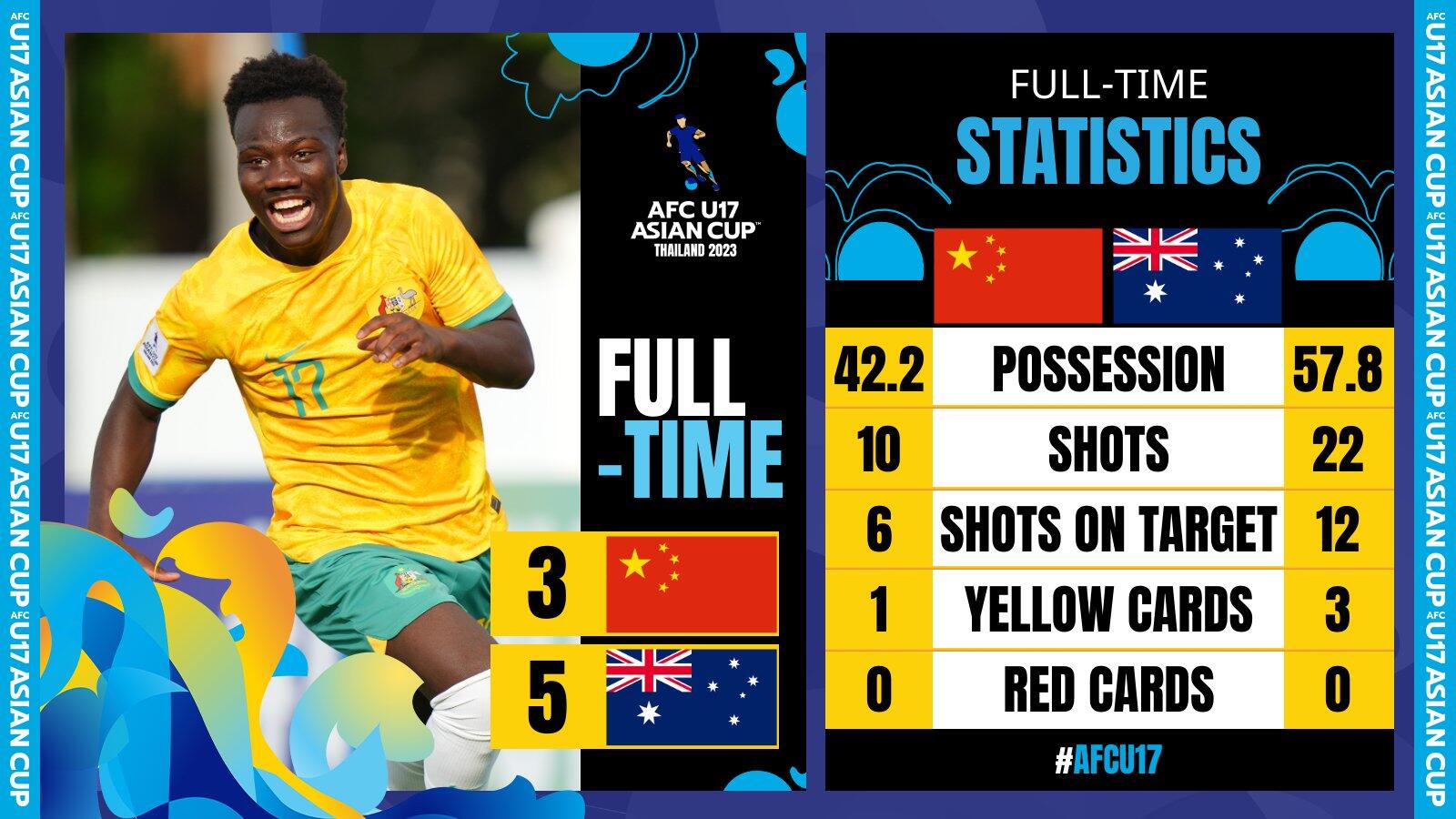 下半场补时8分钟,中国国少3-5澳大利亚U17.