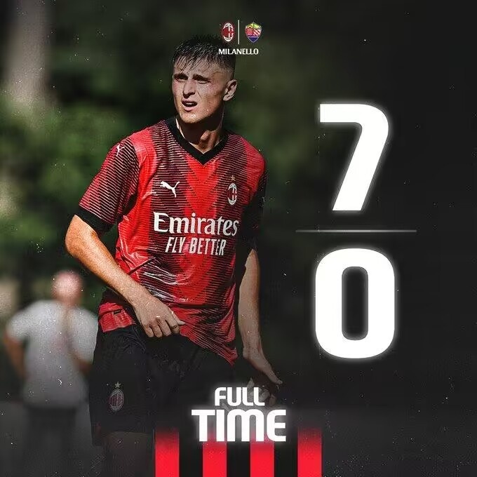 全场比赛结束,AC米兰7-0卢梅扎恩。
