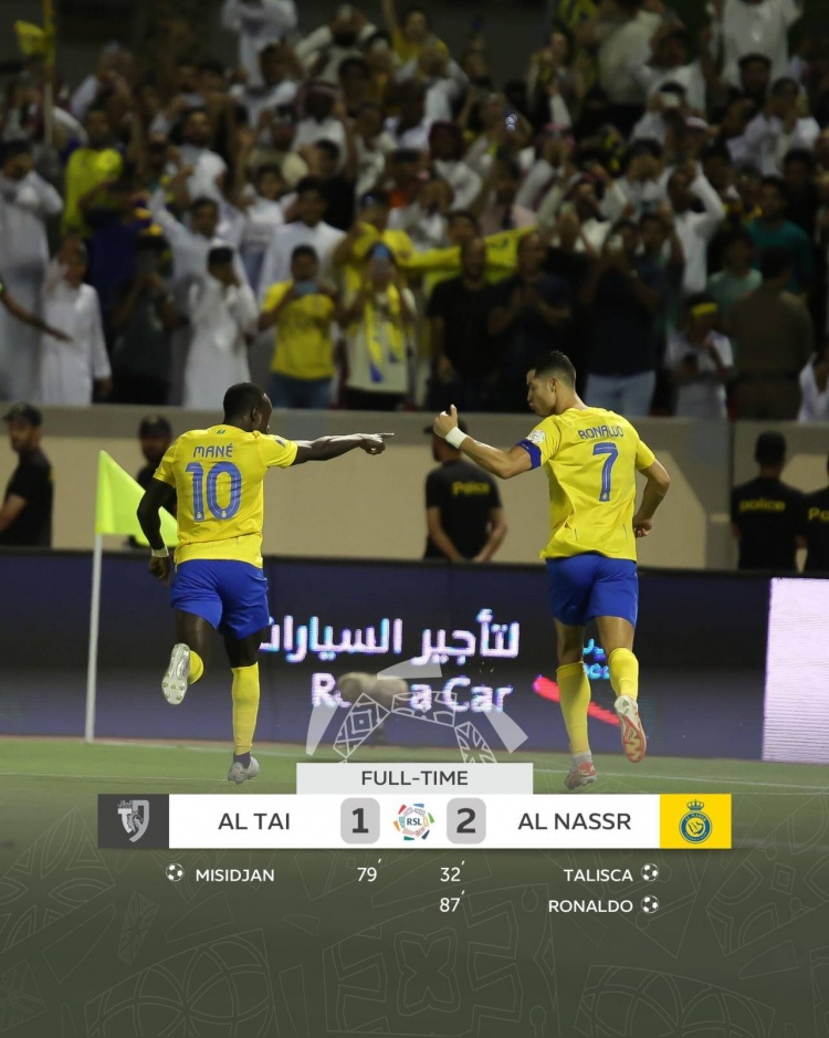 沙特联-C罗传射&近6轮10球5助 利雅得胜利2-1塔伊取各赛事9连胜